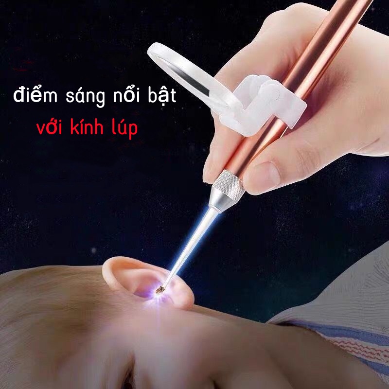 1. 2 loại thìa tai. Người lớn và trẻ sơ sinh có thể được sử dụng riêng biệt, dễ dàng làm sạch. Em bé sử dụng đầu thìa silicon. 2. Phiên bản đầu ti mềm mại, an toàn và dễ dàng. Chất liệu silicon hỗn hợp, dễ uốn cong 90°. Đầu thìa silicon tròn, độ cứng vừa phải và mềm mại. 3. Kính lúp 5x. Phóng to 5 lần từ khoảng cách 5cm và có thể điều chỉnh góc độ. 4. Công nghệ sạc nhanh USB, có thể sử dụng trong 3 tháng trong một lần sạc và không yêu cầu thay pin thường xuyên. 5. Khóa silicon đôi, vừa khít không rơi ra. 6. Có hộp đựng. 7. Thìa lấy ráy tai có đèn, dễ dàng kẹp ráy tai lớn.