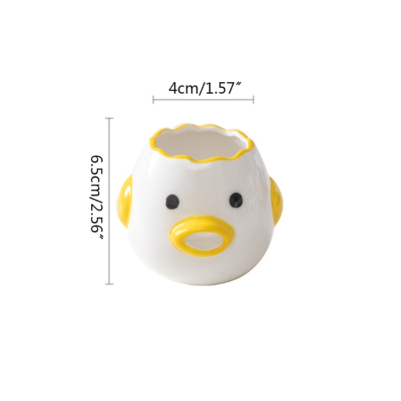 Features: 100% brand new and high quality Made of high quality ceramic, non-toxic, safe and healthy, smooth, hard and sturdy. The top of the separator has a serrated design, hatched broken shell chick design, easy to use to break the eggshell. Easy separation of yolk and white, just pour the egg liquid into the separator and tilt the chick shaped separator. The egg white will flow out of the chick's mouth while the yolk stays inside the separator. Quick time saving, when beating eggs, you can beat them through the bumps on the edge of the egg separator.