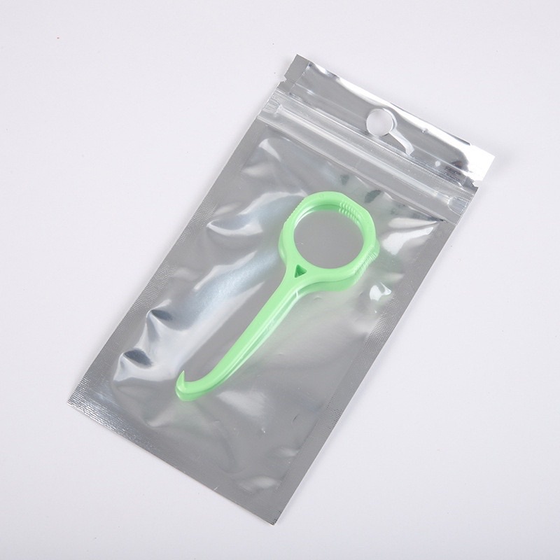 Tác dụng của Dụng cụ tháo khay niềng răng trong suốt, tháo hàm duy trì cho người chỉnh nha - Dụng cụ tháo máng niềng răng có cấu tạo một đầu có móc nhỏ dễ đưa vào khe giữa máng và răng một đầu có vòng tròn để gắn vào ngón tay. Cấu tạo này giúp bạn thuận tiện khi sử dụng -Được nhiều người niềng răng yêu thích sử dụng