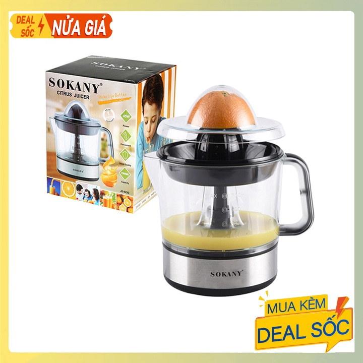 THÔNG TIN SẢN PHẨM: MÁY VẮT CAM SOKANY JE-6230 Thật tuyệt vời và tốt cho sức khỏe khi mỗi ngày chúng ta nạp 1 ly nước cam nhiều vitamin C vào cơ thể – vừa giúp làn da đẹp mịn màng vừa cho đề kháng tốt. Và chỉ từ 2 – 3 phút, bạn đã có ngay 1 ly nước cam nguyên chất, thơm ngon từ máy vắt cam hết sức dễ dàng và tiện lợi. - Điện áp 220 ~ 240V/ 50Hz - Công suất 45W - Kích thước 21 x 22(cm) - Dung tích 700ml - Màu sắc : xanh lá - Vỉ lọc bằng nhựa PP an toàn thực phẩm CÁC TÍNH NĂNG ƯU VIỆT CỦA SẢN PHẨM: - Thiết kế nhỏ gọn: không cồng kềnh, tốn diện tích không gian bếp của bạn - Bình đựng trong suốt giúp bạn dễ dàng quan sát hoạt động và nguyên liệu được vắt ra bên trong. Được làm từ chất liệu nhựa PP an toàn thực phẩm không sản sinh ra chất độc hại trong quá trình vắt các loại trái cây khác nhau - Tay cầm, chân đế làm bằng chất liệu nhựa ABS cách điện: cách nhiệt có độ bên cao, bên dưới chân đế là miếng lót bằng Silicon giúp bạn dễ dàng cố định máy trong quá trình làm việc - Vỉ lọc bằng nhựa PP an toàn thực phẩm: vỉ lọc được thiết kế với có rãnh nhỏ nhằm ngăn hạt rớt xuống bình đựng khi vắt - Máy vắt cam- đối với cuộc sống: Nước cam, chanh, quýt là loại thức uống có chứa nhiều Vitamin C, đường fructoza và giàu nước không những giúp bạn giải khát mà còn giúp bồi bổ cơ thể, giúp hấp thụ các chất dinh dưỡng nhanh chóng HƯỚNG DẪN SỬ DỤNG: - Mở dây hoàn toàn trước khi cắm vào - Nối thiết bị vào nguồn điện - Cắt trái cây thành một nửa - Đặt ly ở phễu rót nước ép của thiết bị - Đặt miếng trái cây lên nón ép, bật thiết bị bằng cách ấn miếng trái cây xuống - Để ngừng thiết bị, chỉ cần dừng ấn nón ép - Tháo nón ép và bộ lọc ra khỏi bình - Rót nước ép vào ly - Nếu bạn xử lý một lượng lớn trái cây, bạn phải định kỳ làm sạch bộ lọc và loại bỏ phần còn lại của cặn ⛵