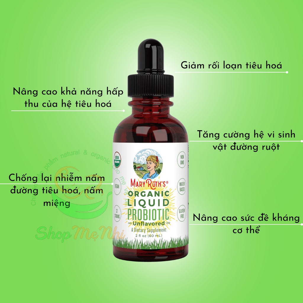 Giới thiệu Dung dịch bổ sung lợi khuẩn hữu cơ Mary Ruth’s Liquid Probiotic 60ml 120ml.