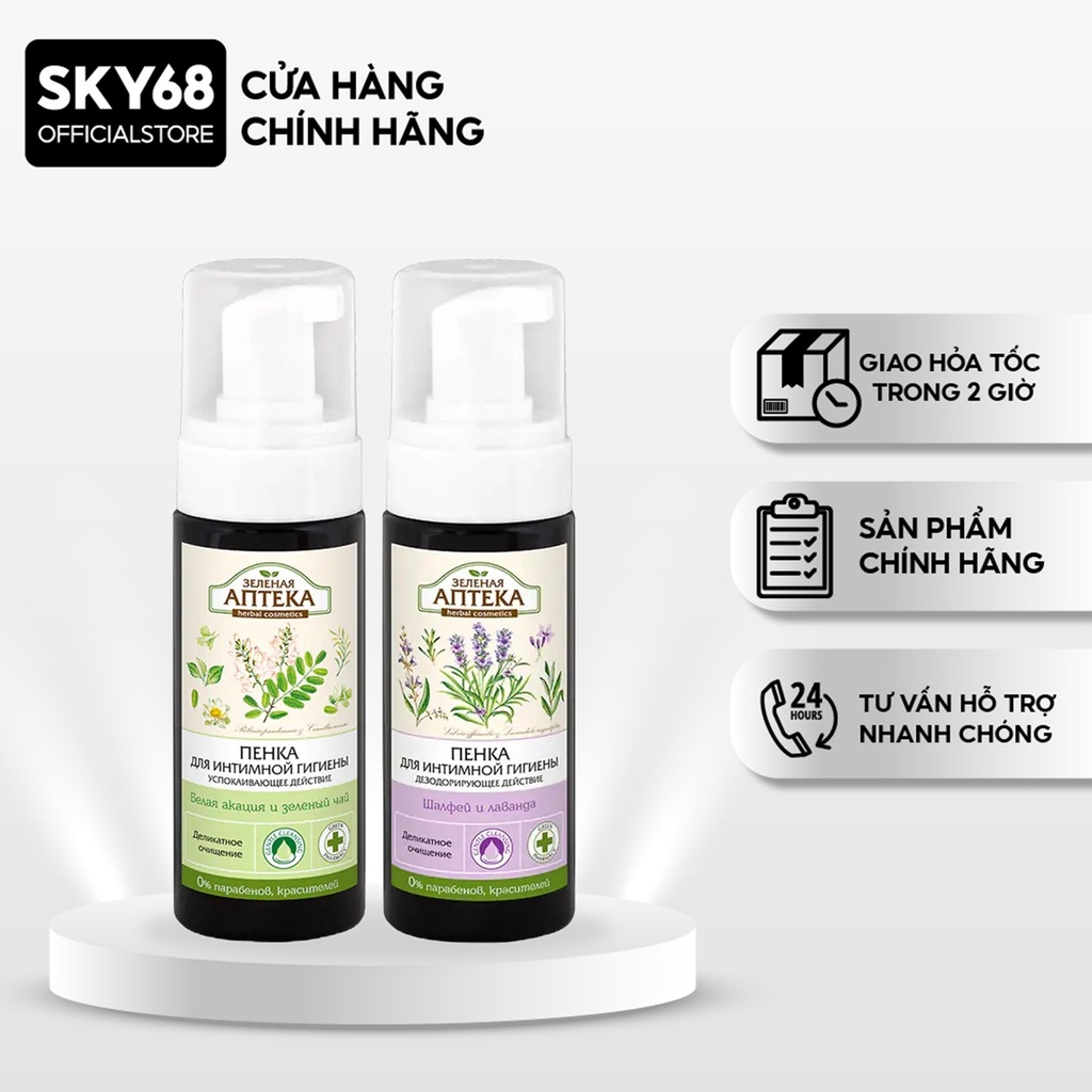 Giới thiệu Dung Dịch Vệ Sinh Phụ Nữ Dạng Bọt Giúp Khág Khuẩn Cân Bằng Độ pH Vùng Kín Zelenaya Apteka 150ml