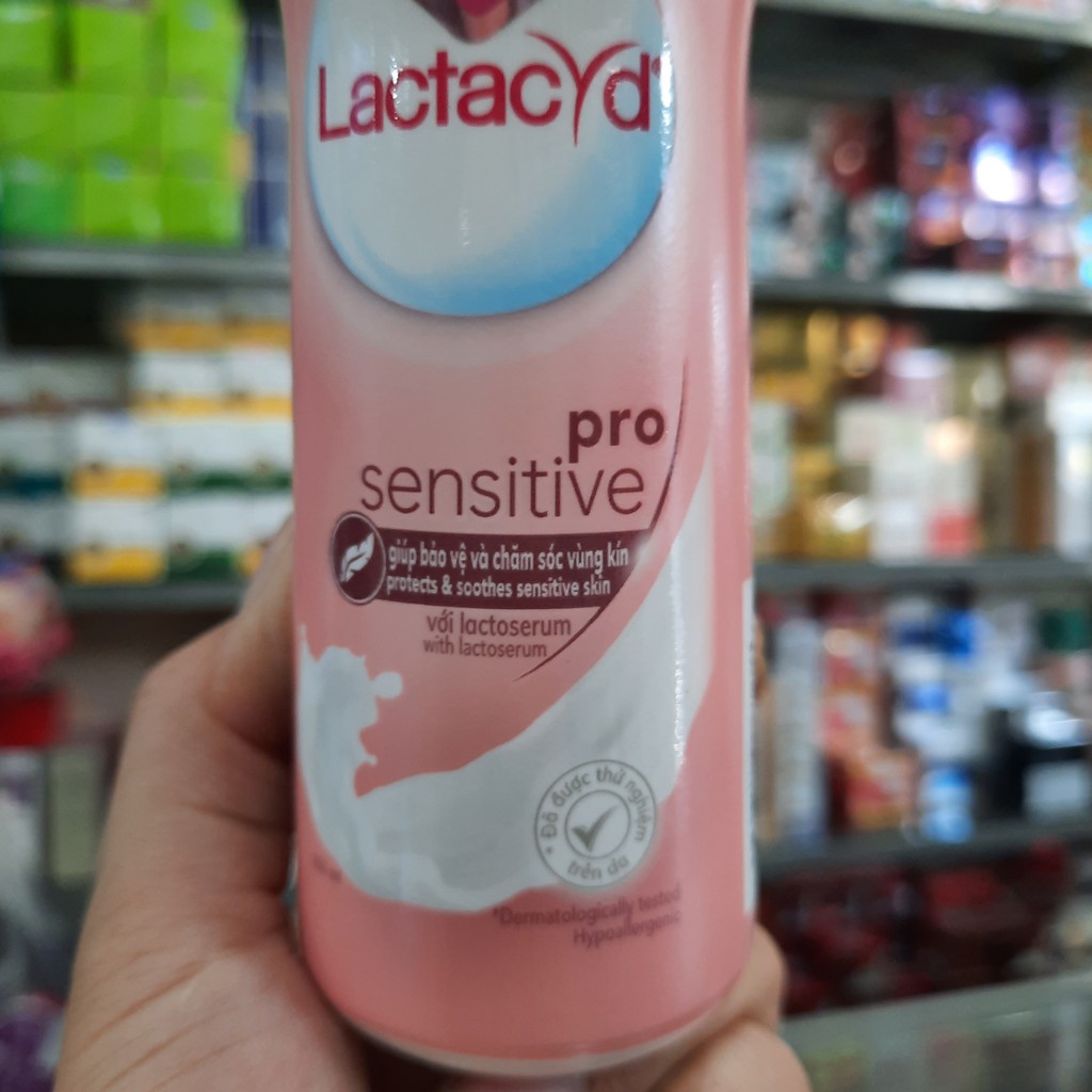 Dung dịch vệ sinh phụ nữ dành cho da nhạy cảm Lactacyd Pro Sensitive 150ml với công thức đặc biệt từ các thành phần tự nhiên gồm Acid Lactic và Lactoserum từ sữa giúp làm sạch bộ phận sinh dục ngoài của phụ nữ, loại trừ cảm giác khó chịu như mùi hôi, ngứa ngáy (không do vi khuẩn và nấm gây ra). Sản phẩm giúp giữ ẩm bên ngoài vùng kín của phụ nữ. Công thức cân bằng PH của vùng nhạy cảm, cho bạn sử thoải mái và tự tin mỗi ngày. ƯU ĐIỂM CỦA DUNG DỊCH VỆ SINH LACTACYD: - Giữ ẩm bên ngoài vùng kín của phụ nữ. - Công thức cân bằng PH của vùng nhạy cảm, cho bạn sử thoải mái và tự tin mỗi ngày. - Acid Lactic và Lactoserum là 2 thành phân tự nhiên, rất tốt cho vùng nhạy cảm. - Acid Lactic là acid tự nhiên của da, giúp hỗ trợ chứ năng hàng rào bảo vệ da ở vùng nhạy cảm. - Lactoserum chiết xuất từ sữa giúp dưỡng ẩm vùng da nhạy cảm, tăng cường tác dụng của Acid Lactic. - Acid Lactic và Lactoserum duy trình pH tự nhiên, giúp bảo vệ vùng da nhạy cảm, cho da mềm mịn. HƯỚNG DẪN SỬ DỤNG: Đổ 1 lượng nhỏ dung dịch vệ sinh phụ nữ dành cho da nhạy cảm Lactacyd Pro Sensitive vào lòng bàn tay, rửa vùng kín, sau đó rửa lại bằng nước sạch. Có thể dùng nhiều lần trong ngày.
