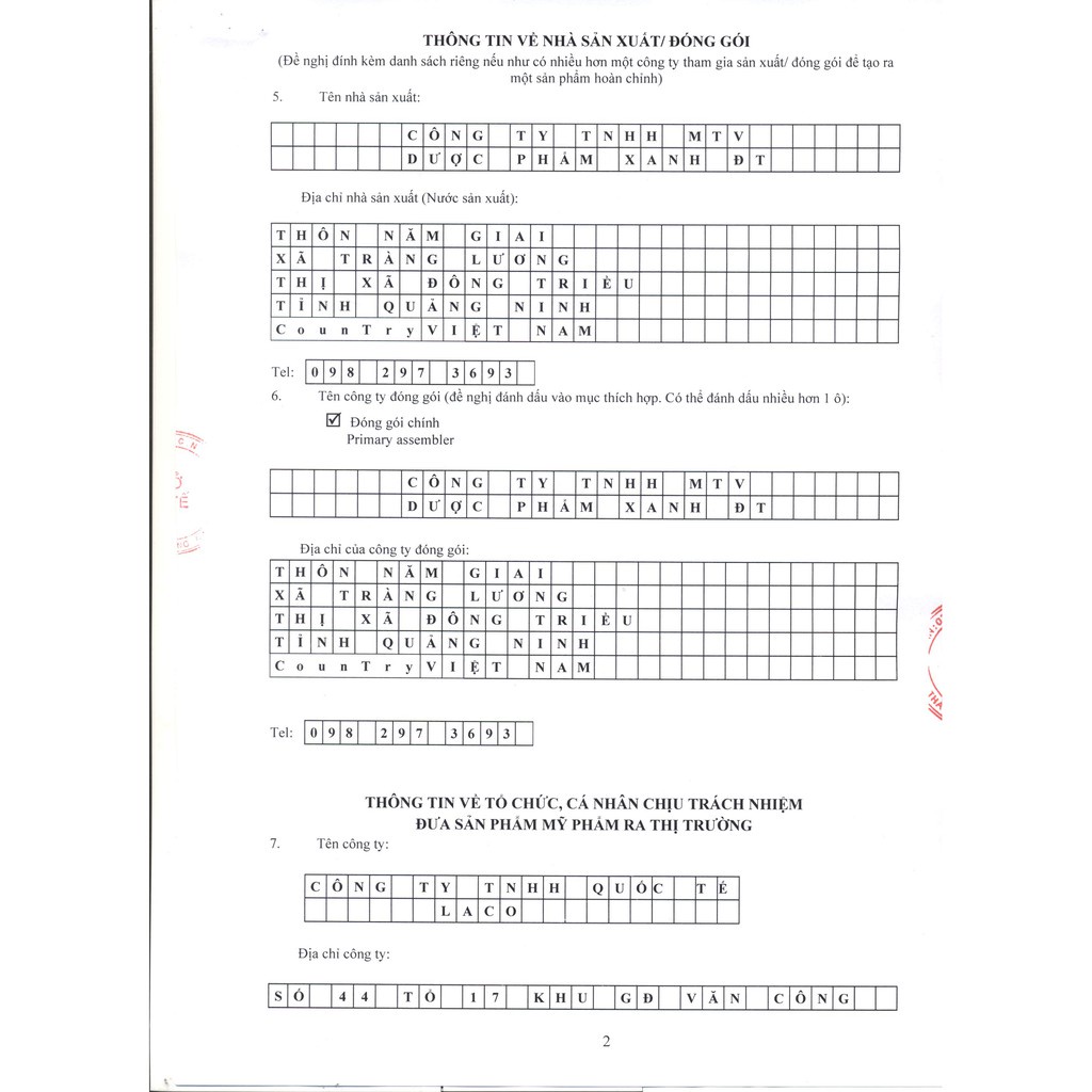 +Quy cách: Chai x 100ml +Sản xuất tại Công ty TNHH Quốc Tế Laco +Số công bố Số: 05/19/CBMP-QN +Xuất xứ: VIET NAM