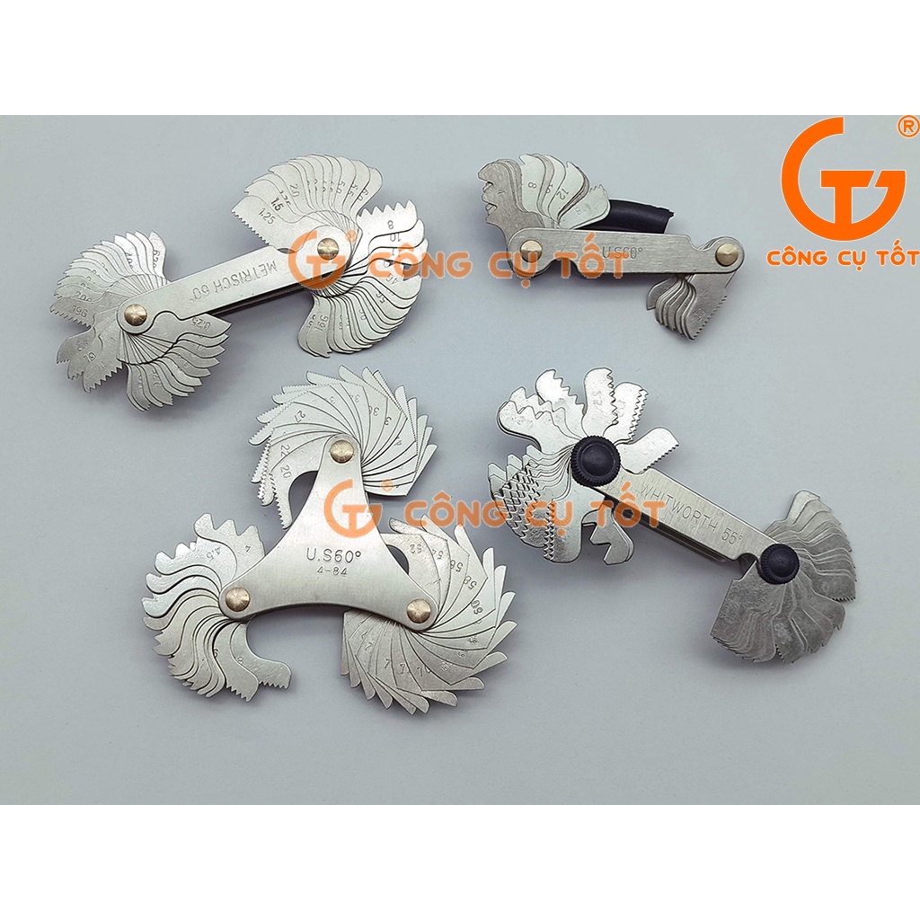 Dưỡng đo kiểm ren tam hệ Mỹ, Anh và hệ mét 58 lá thường được sử dụng để kiểm tra, xác định kích thước đúng của đường ren của sản phẩm bằng cách ướm những lá thước lên các đường ren.