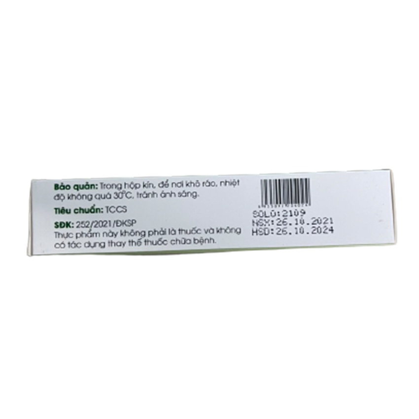 Lưu ý: Không dùng cho người có mẫn cảm với bất kỳ thành phần nào của sản phẩm. Bảo quản: Để nơi khô ráo, nhiêt độ không quá 30°C, tránh ánh sáng. Quy cách đóng gói: Hộp 2 vỉ x 10 viên nang. Tiêu chuẩn: TCCS Số ĐK: 727/2021/XNQC-ATTP; 937/2021/XNQC-ATTP Hạn sử dụng: 36 tháng kể từ ngày sản xuất. Ngày sản xuất, hạn sử dụng in trên bao bì sản phẩm. Sản xuất tại: Công ty TNHH Nam Dược. Nhà phân phối và tiếp thị: Công Ty TNHH Dược Phẩm Ích Nhân. Xuất xứ: Việt Nam.