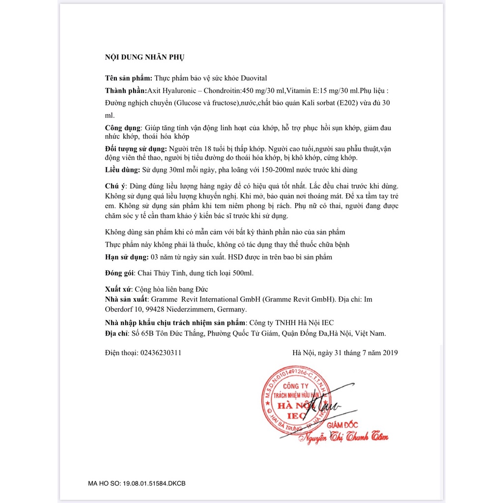 duovital bổ sung dịch nhầy khớp hỗ trợ phòng điều trị thoái hóa khớp tái tạo sụn bôi trơn các khớp hết cứng làm đẹp da