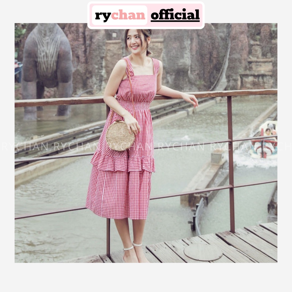 Giới thiệu DX906 - Đầm Đi Biển Hai Dây Nhún Eo Caro Viền Bèo Đầm Hai Dây Đi Chơi Trẻ Trung