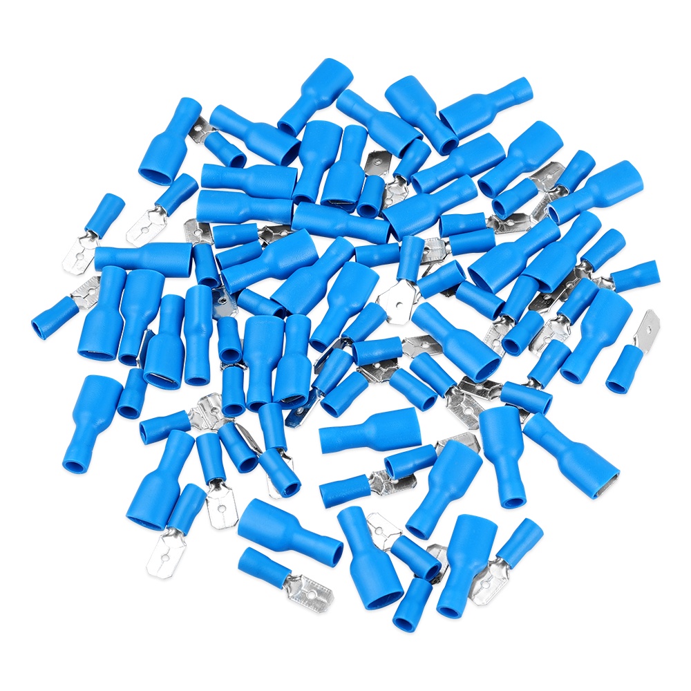 Gói hàng bao gồm: 50 cặp lưỡi và rãnh màu xanh lam chèn Hình dạng xẻng cách nhiệt hoàn toàn FDFD2-250, MDD2-250 mỗi 50