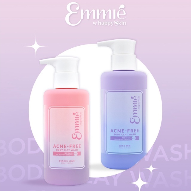 Emmié Sữa tắm Acne-Free Body Clay Wash 250ml là dòng sản phẩm sữa tắm chăm sóc dành riêng cho làn da đang gặp tình trạng mụn cơ thể, với thành phần chứa 12% đất sét trắng Kaolin và phức hợp ngăn ngừa mụn, cùng công thức giàu ẩm và độ pH 5.5 giúp làm sạch sâu, ngừa mụn mà vẫn mềm mịn, không khô da.