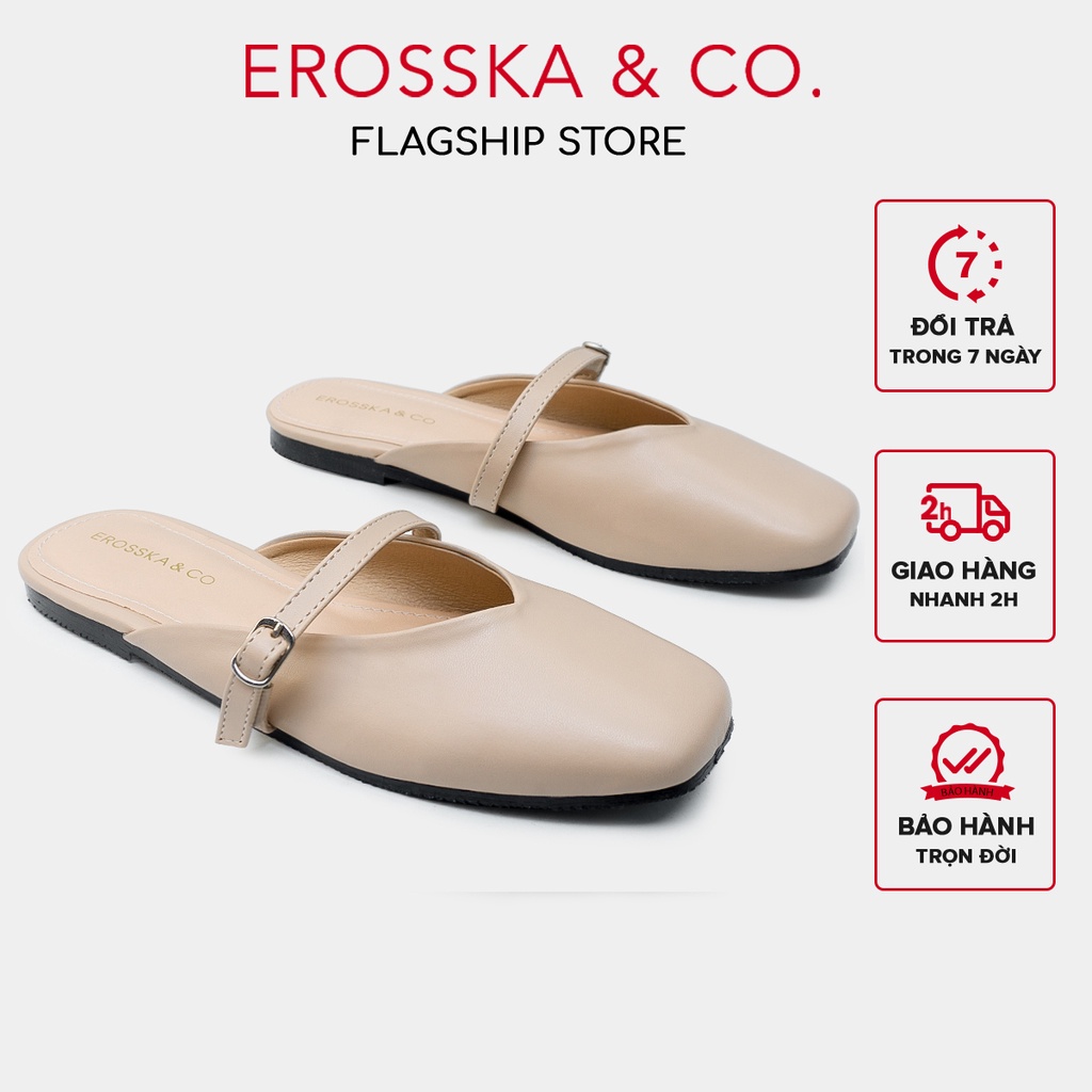 Thông tin sản phẩm: Erosska - Giày nữ đế bệt đạp ngót quai ngang phong cách thanh lịch màu kem - EL020