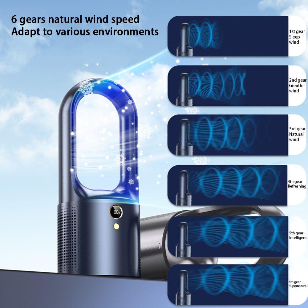 Kích thước sản phẩm Length135mm Length135mm Height330mm Quạt điện Turbo không cánh USB có thể sạc lại Pin 2000mAh Quạt làm mát không khí 6 tốc độ Gió gia đình Im lặng Mini Portable