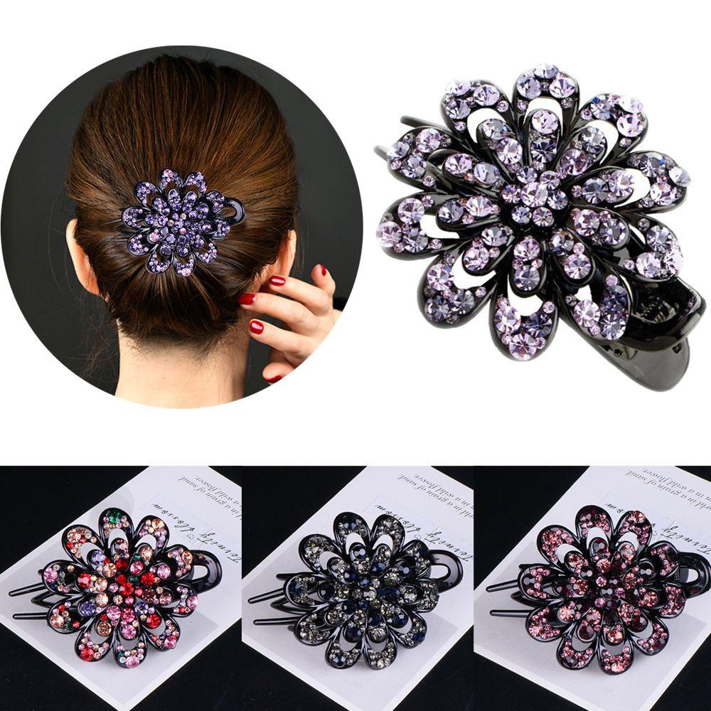 Kẹp tóc hoa pha lê 1 CÁI Kẹp tóc Rhinestone Pha lê Hoa Dovetail mỏ vịt Ghim Kẹp tóc Kẹp tóc Bền linh hoạt Phụ kiện mũ nón Phụ kiện Phụ nữ Cô gái Thời trang cổ điển