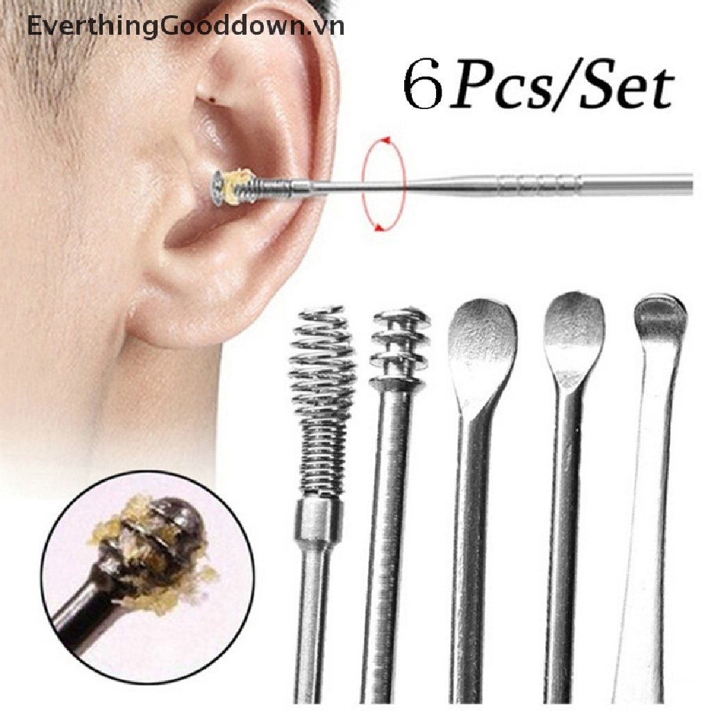 Giới thiệu Everthingood Bộ 6 Dụng Cụ Lấy Ráy Tai Bằng Thép Không Gỉ Hình Muỗng / Lấy Ráy Tai