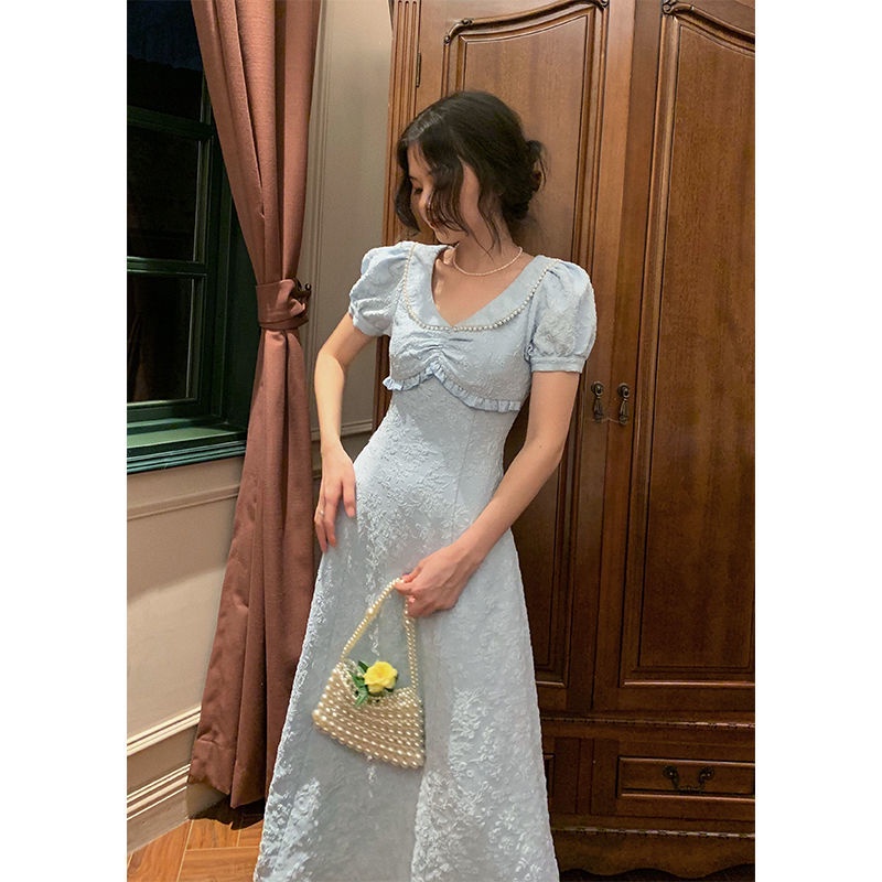 Giới thiệu [F & X] Đầm Jacquard Dài Đến Giữa Eo Dáng Ôm Họa Tiết Dập Nổi Đính Ngọc Trai Cổ Điển Kiểu Pháp Thanh Lịch