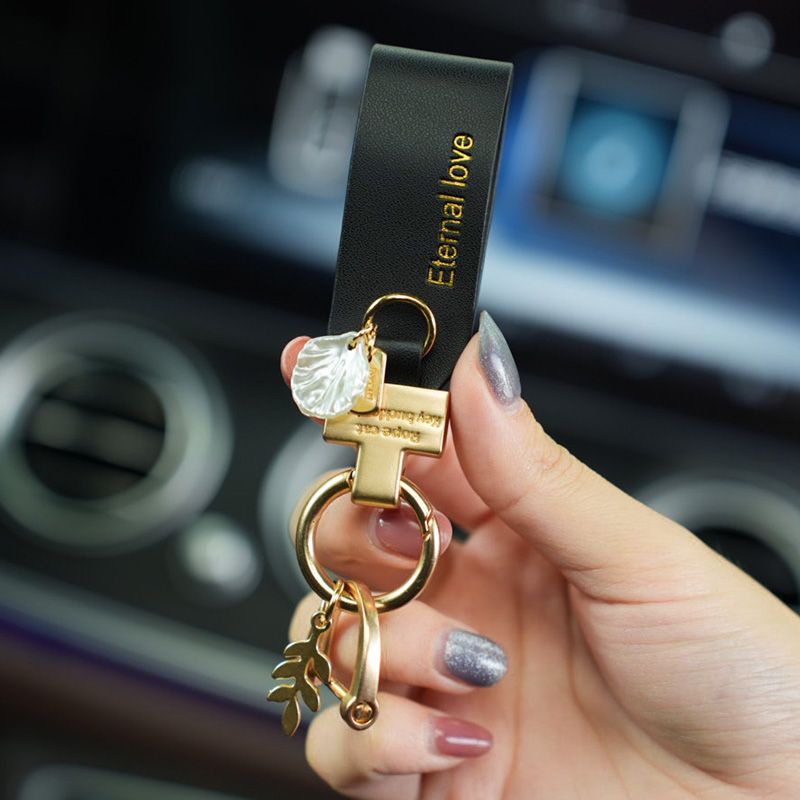Ô tô > Móc chìa khóa và Bọc chìa ô tô > Fashion PU Leather Keychain Business Gift Leather Key Chain Men Women Car Key Strap Waist Wallet KeyChains Keyrings French Shell Key Chain Creative Ins Small Fresh Key Ring Ladies
