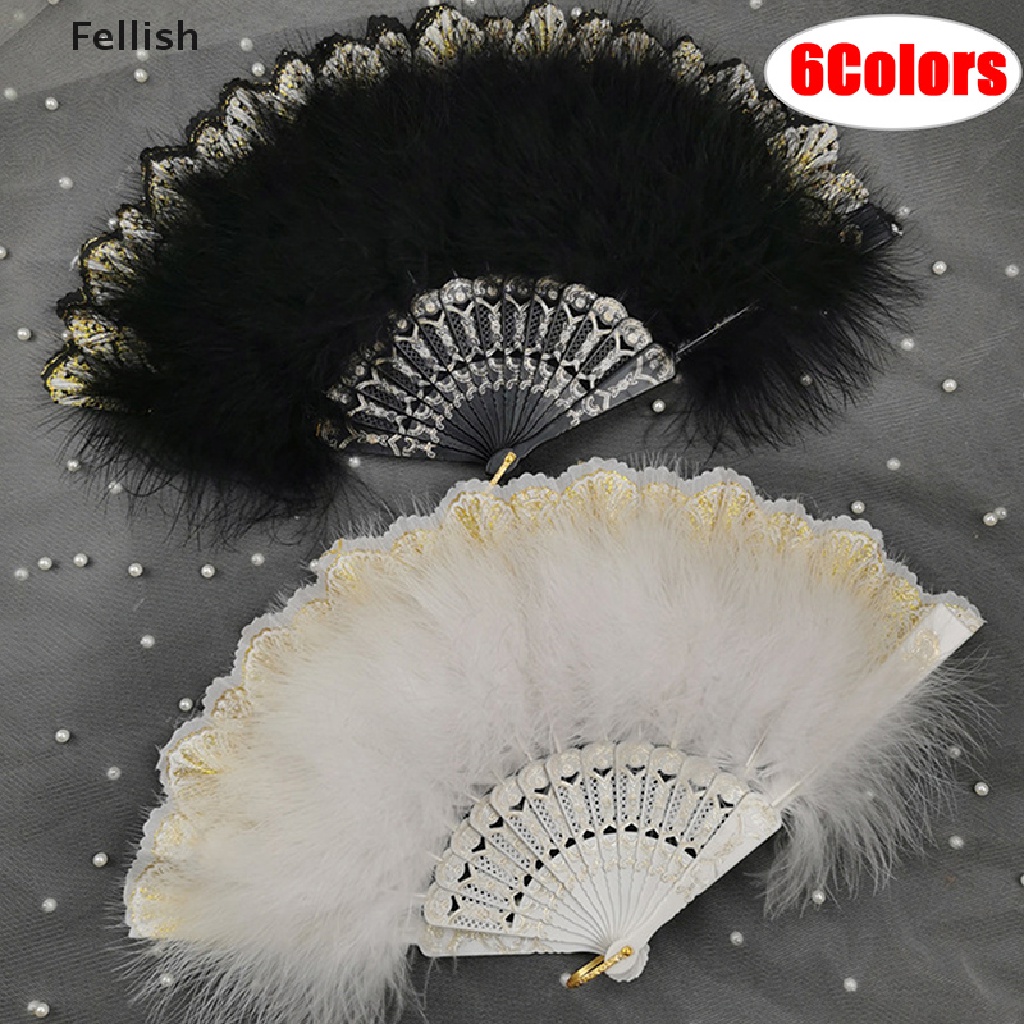 Giới thiệu [Fellish] Lolita Feather Folding Fan Fairy Dark Gothic Court Dance Wedding Party Decor 436VN