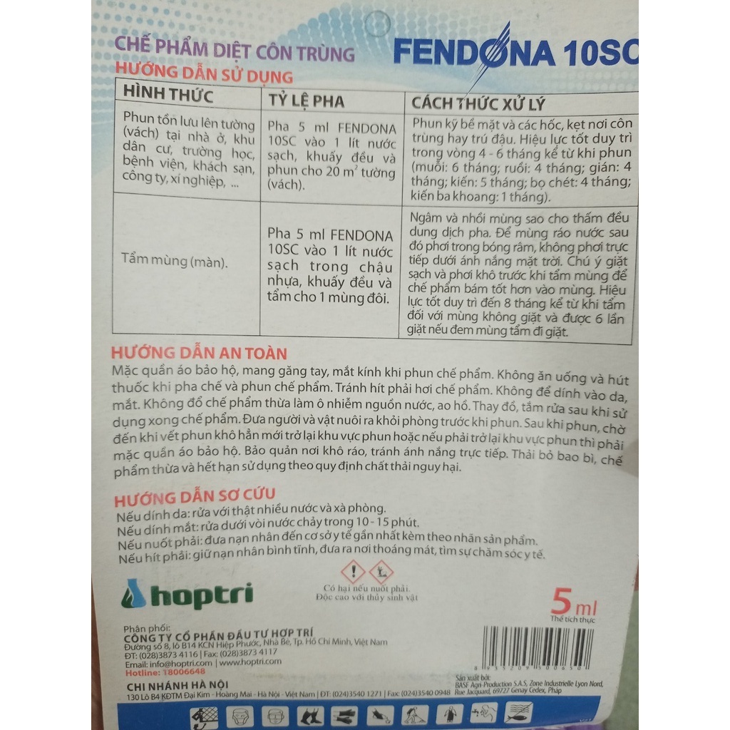 Giới thiệu FENDONA 10SC gói 5 ml - Thuốc diệt muỗi, côn trùng, gián, kiến, ruồi, bọ chét... (Fedona Hàng châu Âu)