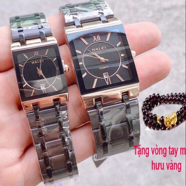 Giới thiệu [FLASH SALE]Cặp đồng hồ HALEI dây thép - TẶNG 1 vòng ty hưu- dây đen mặt đen