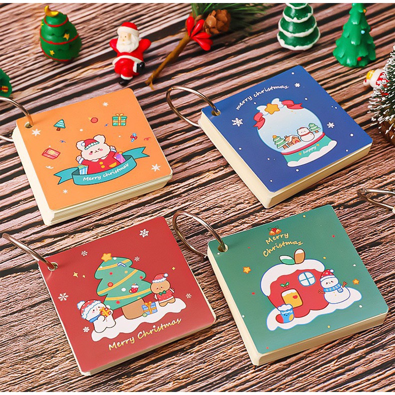 Flashcard giáng sinh, thẻ học từ vựng tiếng trung,anh,hàn, nhật kèm khoen có thể tháo rời. Bìa: giấy cứng Đặc điểm kỹ thuật 7 * 7cm; Trọng lượng sản phẩm đơn 43,6 gram; 80 trang dày dặn dùng để học từ vựng ghi chép... Có 4 màu lựa chọn: xanh dương, xanh lục, đỏ nâu, vàng cam,