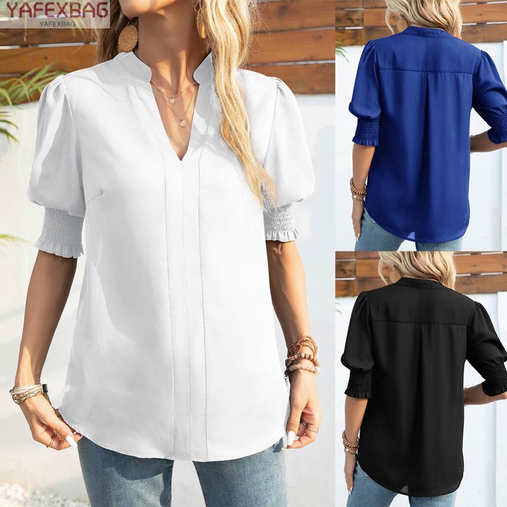 Giới thiệu Flattering Short Sleeve Blouses for Women Elegant V Neck Chiffon Shirts in Solid Colors for Work