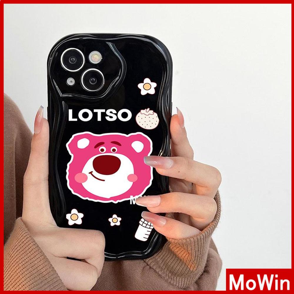 Giới thiệu For iPhone 14 Pro Max iPhone Case 3D Curved Edge Wave Glossy Black TPU Airbag Shockproof Camera Cover Strawberry And Bear Compatible with iPhone 13 Pro max 12 Pro Max 11 xr xs