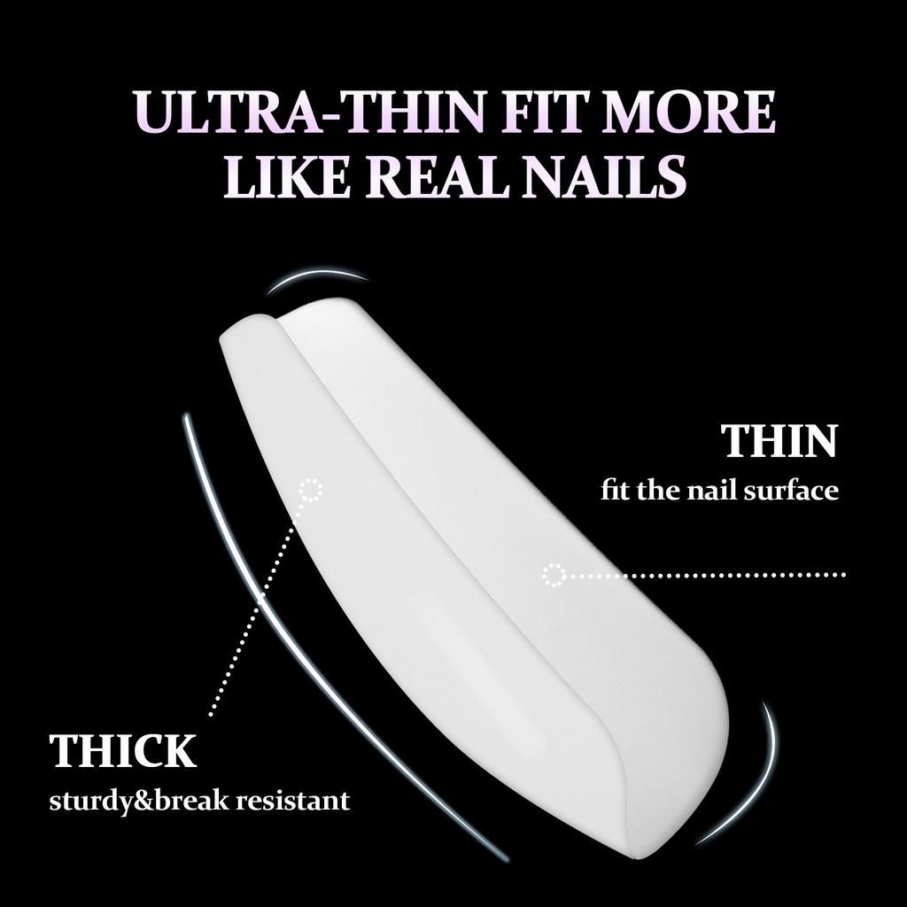 L Dễ sử dụng: Viền nhẵn của chúng tôi có đường cong nông hơn, thuận tiện hơn khi ấn vào giường móng tay, không gây cảm giác khó chịu "độ chặt", giữ màu tốt mà không cần tách hoặc tiếp xúc, móng tay của bạn sẽ Nhìn tự nhiên hơn. Các đầu định hình trước không cần giũa và tiết kiệm nhiều thời gian của bạn, dính chắc chắn hơn. L Có thể tái sử dụng lên đến 3 tuần mỗi lần mặc - Chất lượng cao là tên giữa của chúng tôi. Bộ móng tay có thể tái sử dụng này có thể được cắt tỉa, dũa hoặc đánh bóng theo ý thích của bạn.