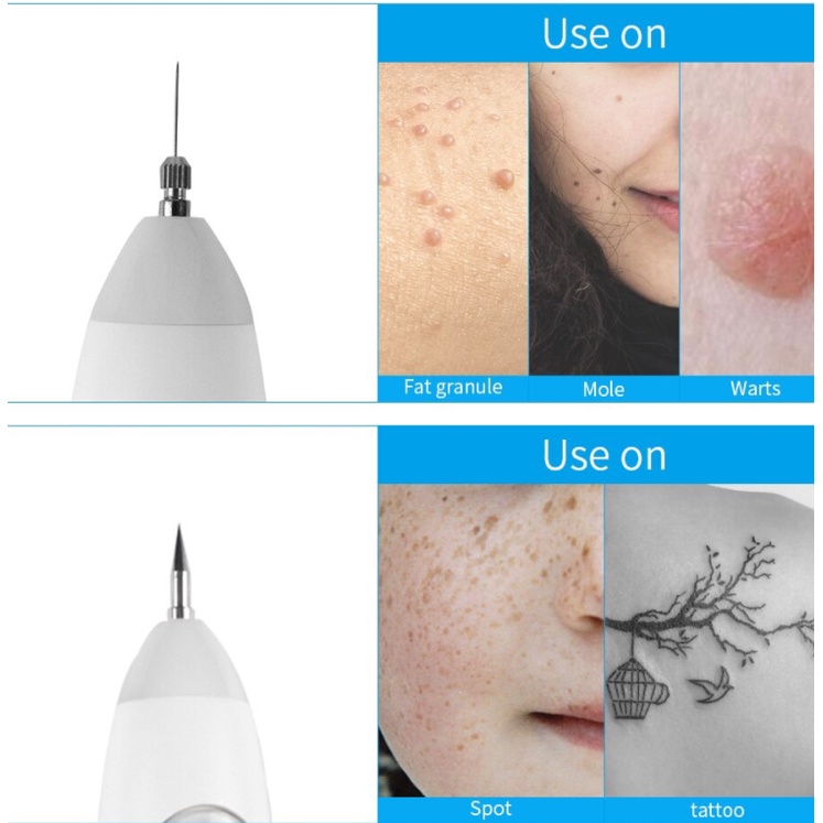 Đặc điểm: Loại bỏ các loại thẻ da khác nhau, chẳng hạn như mụn cóc, nốt ruồi, xăm nhỏ, tàn nhang, đốm. Kim mịn: Phù hợp với hạt mỡ, hạt mỡ, nốt ruồi, mụn cóc. Kim dày: Phù hợp cho tại chỗ, hình xăm Hai cách để đặt kim: Kim dày vào đầu bút trực tiếp. Đưa kim mịn vào tay áo kim trước, sau đó luồn ống tay kim vào bút.