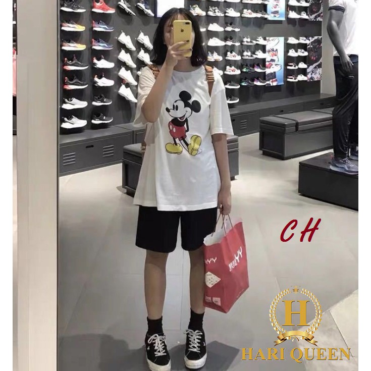 Sét áo Mickey + quần đùi rẻ đẹp Áo thun nữ ngắn tay thời trang Chất liệu: Cotton tixi Màu sắc: Trắng Sản phẩm nữ Free size dưới 1m62, 40-52kg tùy chiều cao
