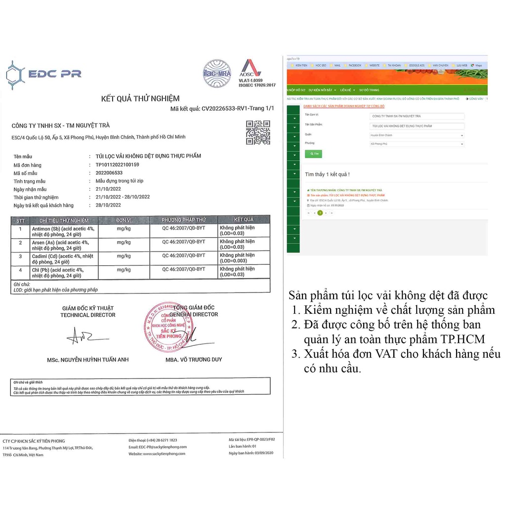 📌Túi lọc đa năng của Salem Tea Shop Cam kết: Được làm từ chất liệu vải không dệt PP chịu được nhiệt độ từ 130 độ C – 170 độ C ( nhiều sản phẩm vải không dệt không phải chất liệu PP không đáp ứng được nhiệt độ này), dày dặn, sờ rất mịn, không bị xù lông, đường dập thẳng , đẹp , độ dày túi từ khoảng 0,12 - 0,15 mm. Túi lọc trà làm từ vải không dệt có khả năng tự phân hủy rất thân thiện với môi trường, chịu được nhiệt độ cao, Miệng túi được hàn nhiệt chắc chắn 📌Sản phẩm túi lọc vải không dệt đã được 1. Kiểm nghiệm về chất lượng sản phẩm. 2. Đã được công bố trên hệ thống ban quản lý an toàn thực phẩm TP.HCM. 3. Xuất hóa đơn VAT cho khách hàng nếu có nhu cầu. 📌 Túi sử dụng để: - Lọc trà hoa, nấm linh chi, làm trà túi lọc. - Lọc sữa đậu nành, sữa hạt - Dùng để đựng thực phẩm đun nấu trên bếp: hầm cốt nước dùng, hầm xương, nấu phở - Lọc dầu dừa, cặn thức ăn - Làm túi lọc bồ kết, thảo mộc dạng nghiền, làm túi lọc thảo mộc để tắm hoặc gội đầu - Lọc thuốc bắc - Lọc bột của quả giặt bồ hòn - Đựng hoa khô, cà phê , hạt hút ẩm, hương liệu, làm túi thơm... - Đựng bột chống rỉ do không bị ăn mòn. - Đựng phân bón cho hoa lan, cây cảnh, cây trồng... - Làm túi chống bụi cho thắt lưng, quần áo, đồ trang sức, bóp, ví....