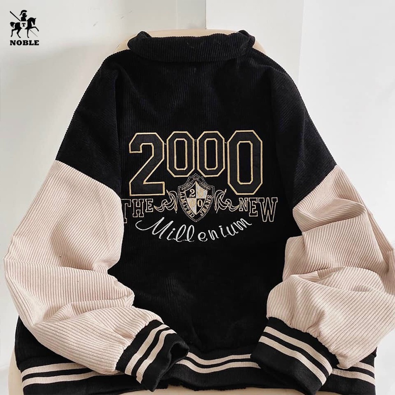 Giới thiệu [Freeship] Áo khoác nữ vải nhung style Unisex bomber chữ 2000 mẫu mới chất vải tốt thời trang NOBLE TP074