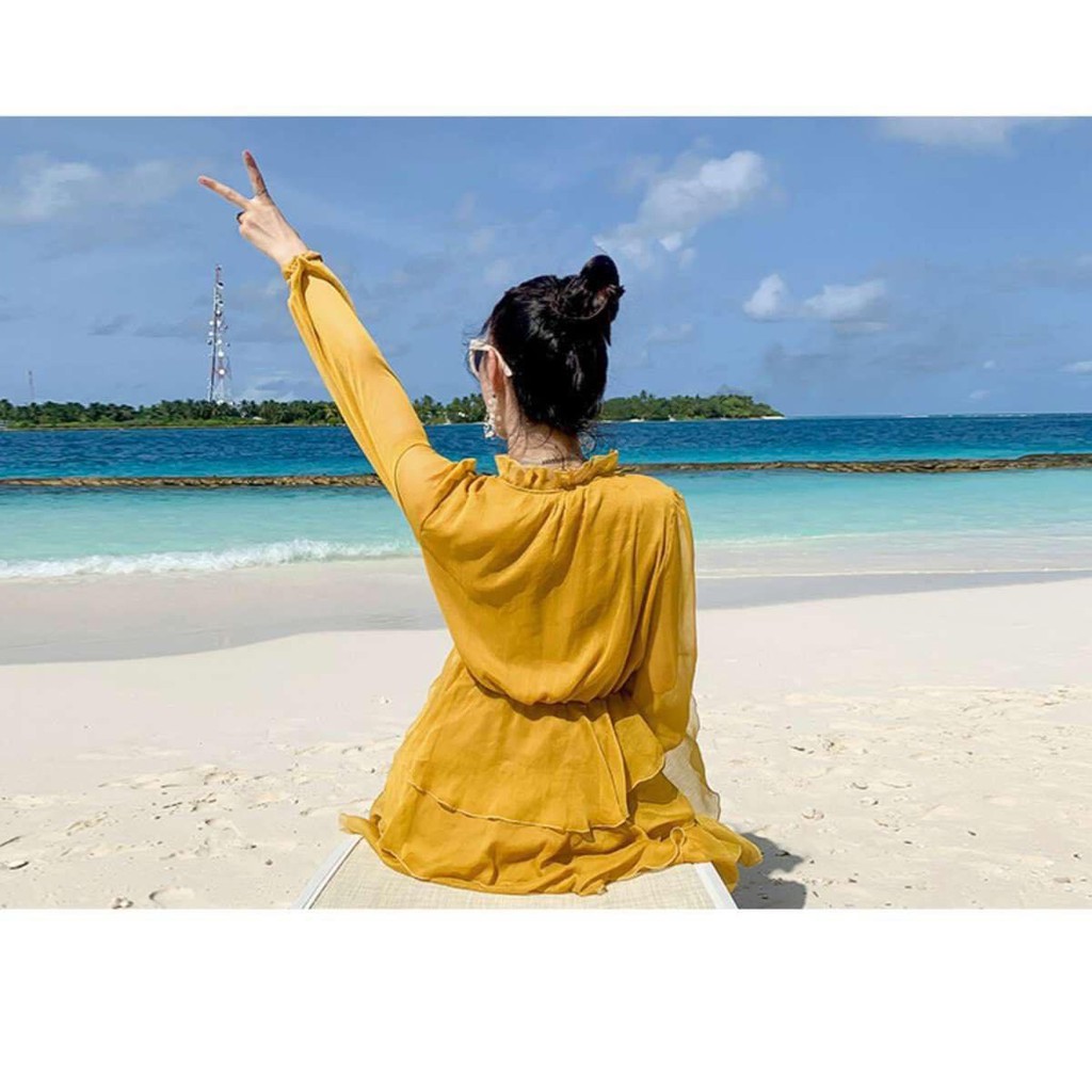 Giới thiệu [FREESHIP] Đầm Maxi Đi Biển Đầm maxi vàng tầng