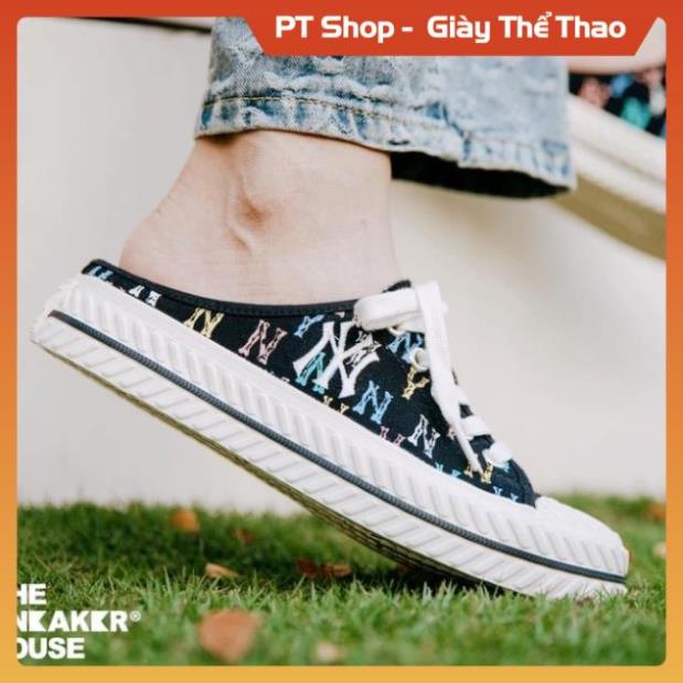 [FreeShip-Hàng Xịn] Giầy MLB NY đen và trắng đạp gót hót trend , Giày MLB sục đen trắng cao cấp full phụ kiện Sneaker
