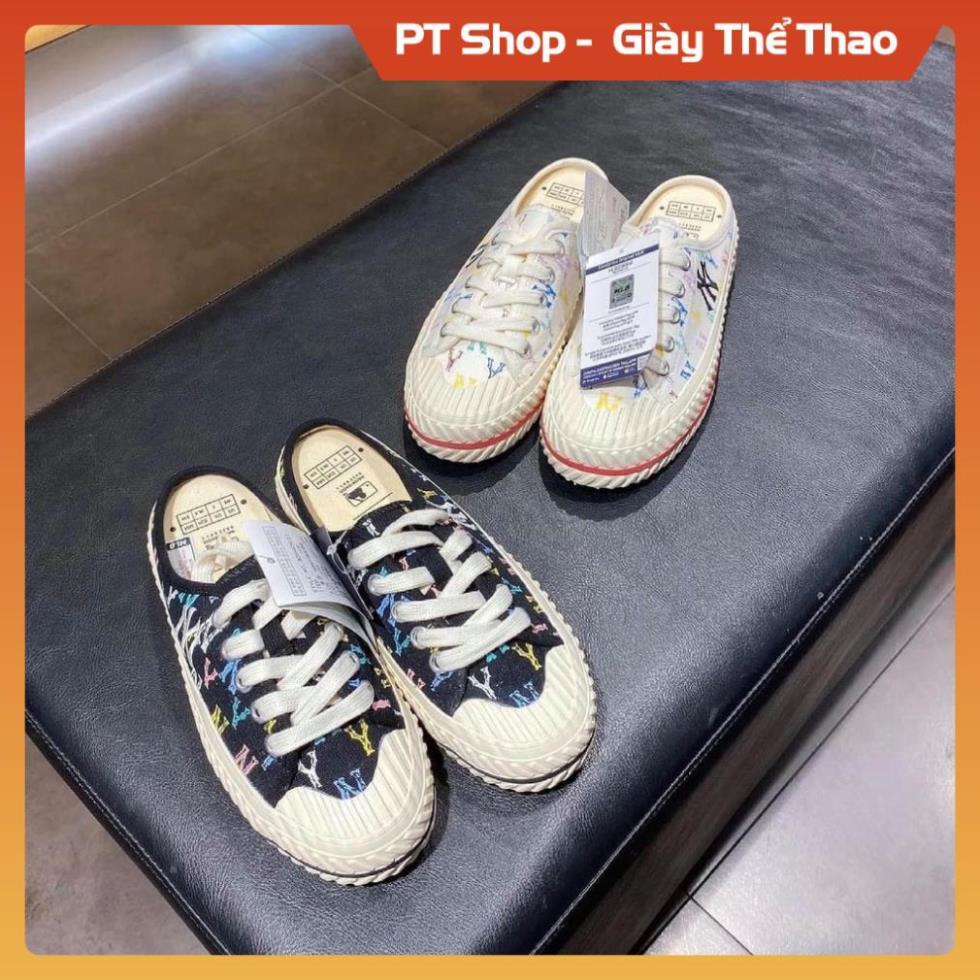 Giày Dép Nữ > Giày Đế Bằng > Giày Sục & Giày Búp Bê > [FreeShip-Hàng Xịn] Giầy MLB NY đen và trắng đạp gót hót trend , Giày MLB sục đen trắng cao cấp full phụ kiện Sneaker