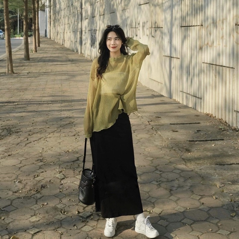 Áo voan mỏng bay bay nửa kín nửa hở, tặng kèm 1 áo quây bên trong. Vải voan gân hàng đẹp co giãn nhẹ, dày tay, đường may chắc chắn ✌🏻
