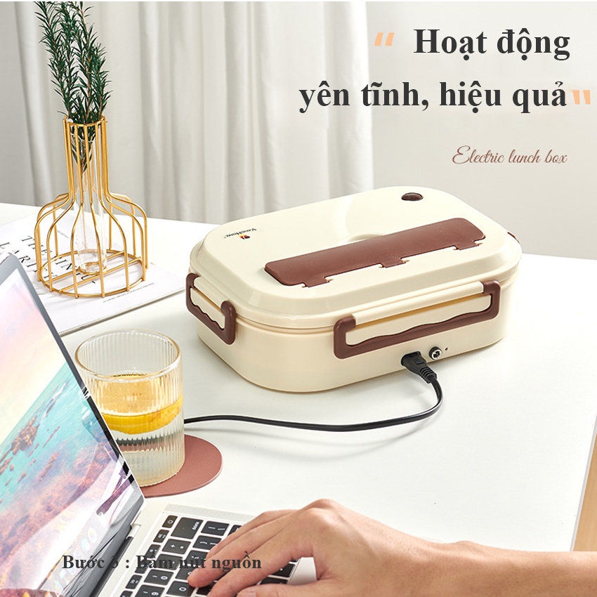 Giới thiệu [FULL COMBO] Hộp cơm cắm điện hâm nóng 70 độ Vandhome dung tích 1200ml tặng kèm túi và bộ đũa AGISAN bảo hành