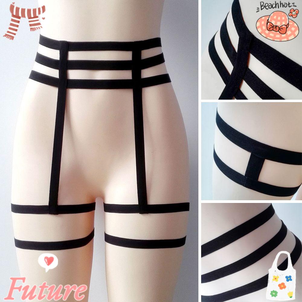 L ' Eo ' 70cm , Hông ' 64cm , Cao đùi ' 30cm , Chu vi đùi ' 30cm . Leg Garter Belt Harness Dây treo Dây đeo rỗng Lồng Chuỗi Đồ lót Đàn hồi Phụ nữ Gợi cảm