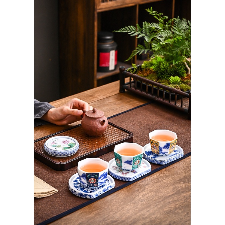 Gác Nắp Ấm Trà, Ấm Tử Sa, Đế Kê Lót Chén bằng Sứ Men Ngọc Cao Cấp