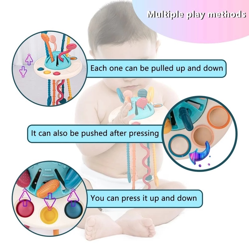 Mô tả Chất liệu Silicone chất lượng cao, an toàn, khử nhiệt độ cao Rèn luyện khả năng nắm tay của bé, Khả năng thính giác, v.v. Đồ chơi thú vị và nhiều cách chơi khác nhau