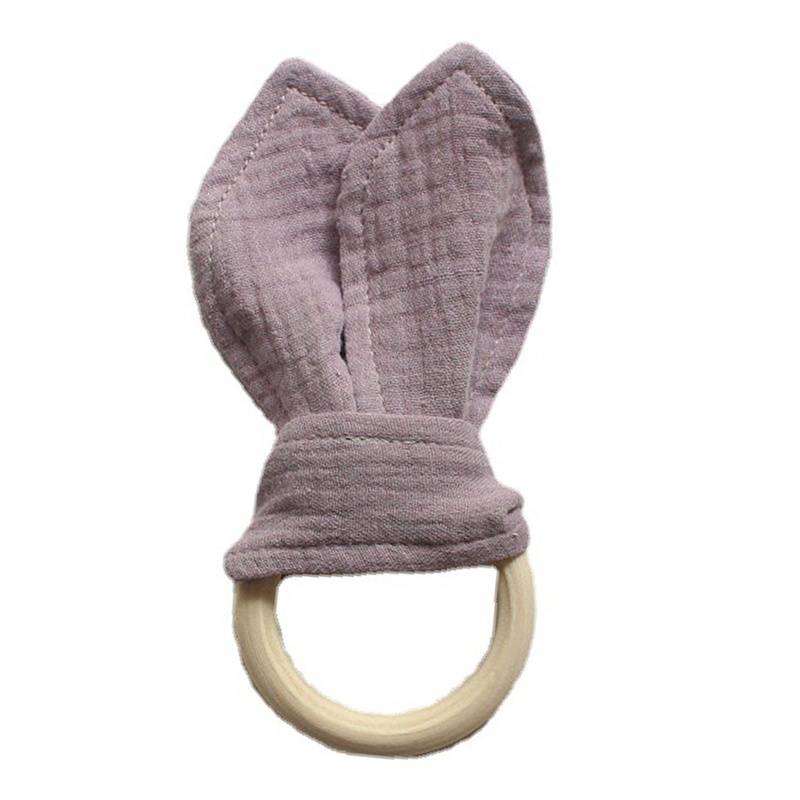 Giới thiệu Đồ Chơi Gặm Nướu Bằng Cotton Mềm Mại Hình Tai Thỏ Với Tay Cầm Bằng Gỗ Dễ Thương Cho Bé