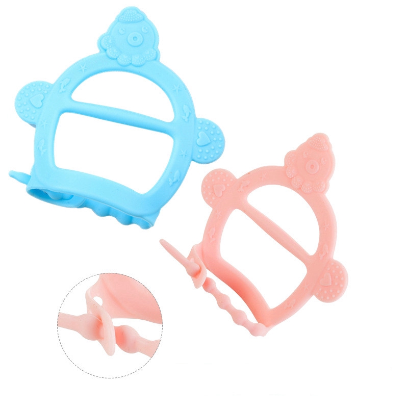 Đồ chơi gặm nướu bằng silicon dành cho em bé mọc răng Màu sắc: Hồng, Xanh dương Đóng gói: Đóng gói riêng lẻ Độ tuổi phù hợp: Trên 3 tháng tuổi Chất liệu: Silicon