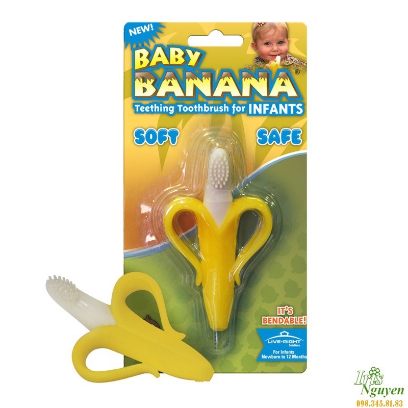 Giúp bé giảm đau nhức; sưng lợi; ngứa trong suốt quá trình mọc răng. Massage vùng nướu; lợi bị ngứa cho bé. Chất liệu mềm; dễ dàng cầm nắm; hình quả chuối nên mẹ không lo bé bị hóc nhé. Đánh sạch tưa; mảng bám trong khoang miệng của bé. Giúp bé loại bỏ tật mút tay. Nhựa an toàn; không chất độc hại. Sử dụng cho các bé từ 3 tháng tuổi trở lên.