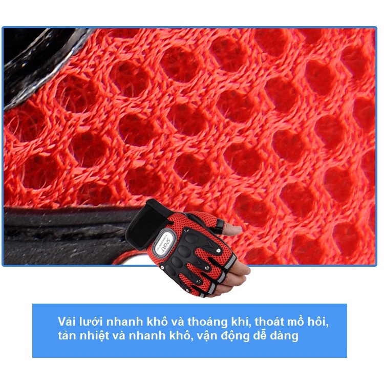 GĂNG TAY HỞ NGÓN NAM NỮ THỂ THAO CHỐNG NẮNG THOÁNG KHÍ ĐI XE MÁY, XE ĐẠP, TẬP GYM, ĐI PHƯỢT GT05