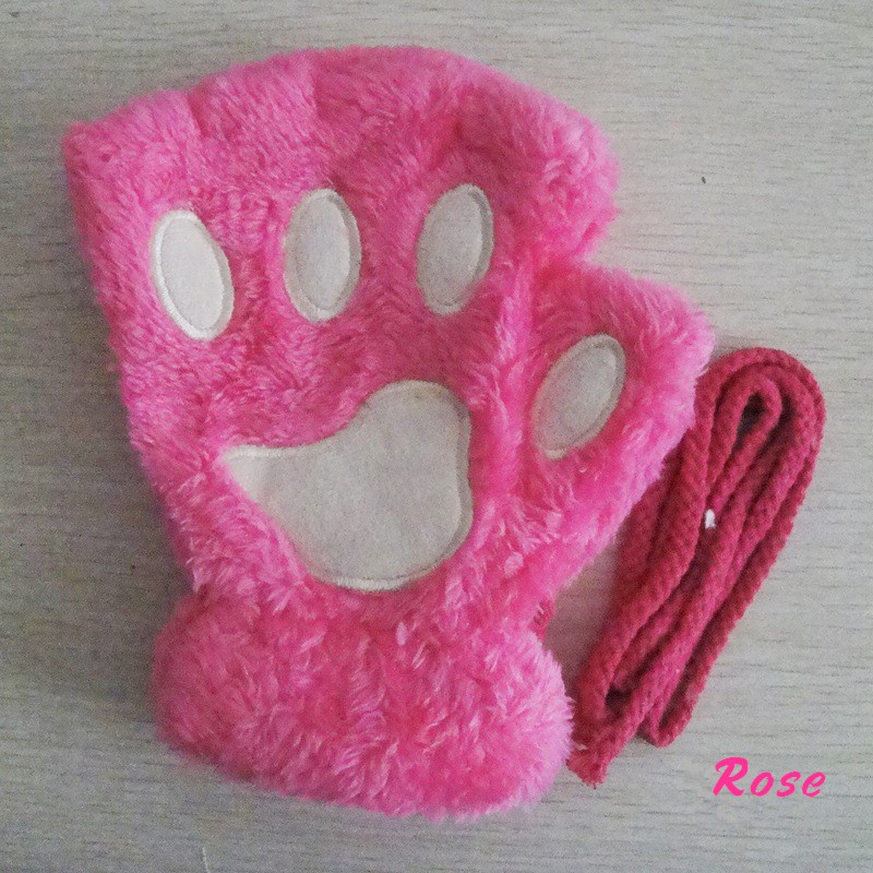 Lovely Women Bear Cat Claw Paw Mitten Plush Gloves Short Finger Half Gloves Ladies Half Cover Female Gloves