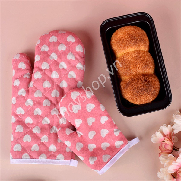 Găng tay lò hồng tim (1 chiếc) Dùng để cách nhiệt sử dụng lò nướng ...