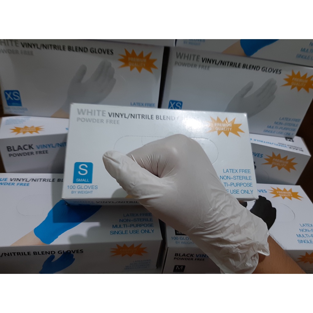 Sức Khỏe > Vật tư y tế > Bao tay và khẩu trang y tế > Găng Tay Không Bột Màu Trắng KHÔNG BỘT Vinyl/Nitrile Hộp 100 Chiếc Dùng Trong Làm Tóc Thẩm Mỹ, Spa, Nha Khoa