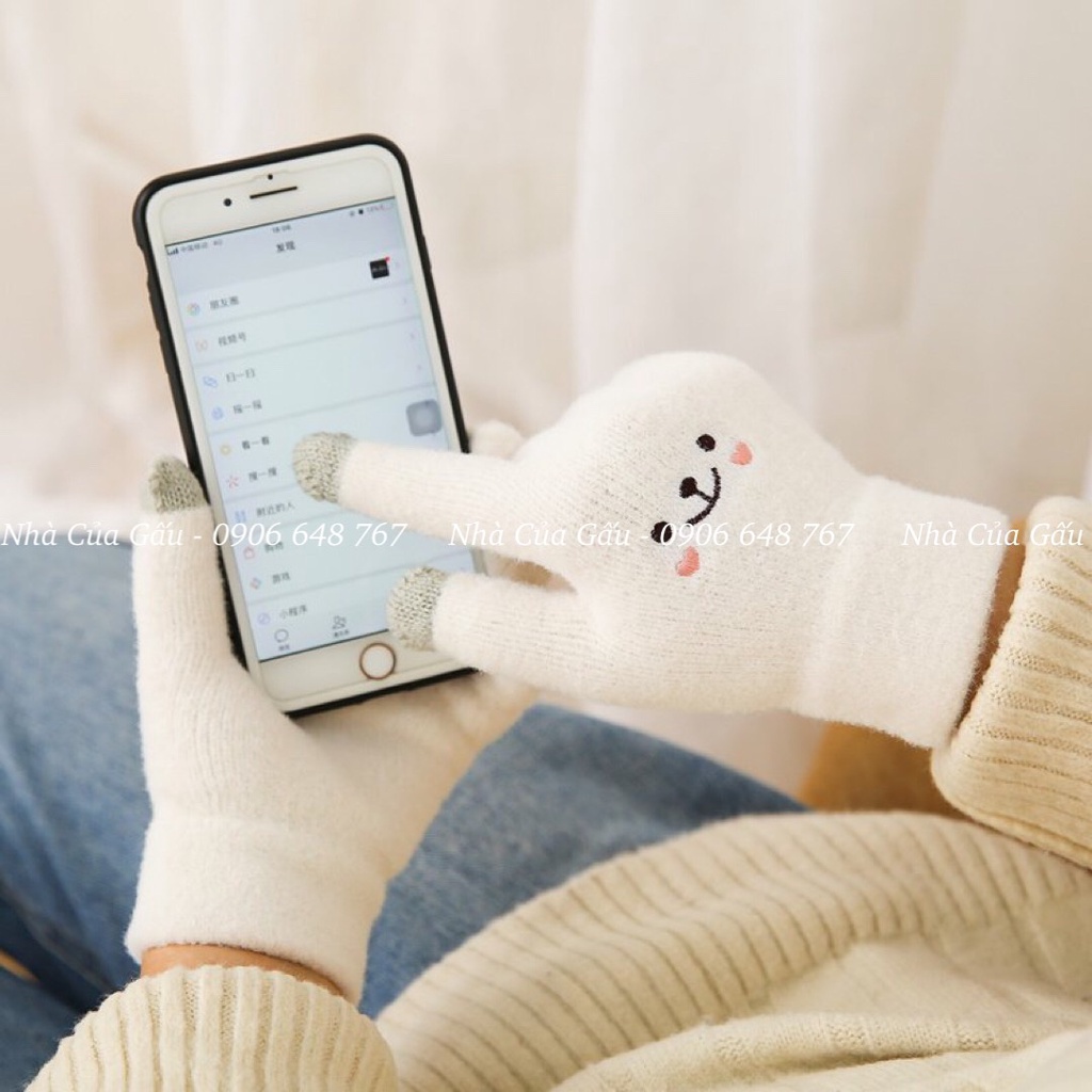 Giới thiệu Găng tay len cảm ứng nữ hình mặt cười cute xỉu