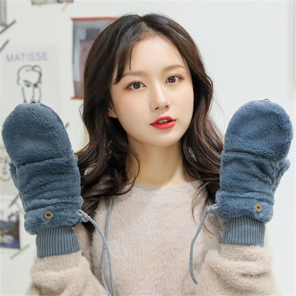 1 đôi găng tay sang trọng Găng tay mùa đông Ấm tay nửa ngón Nắp lật chống gió Lông giả sang trọng Giữ ấm Thời trang của phụ nữ Dễ thương