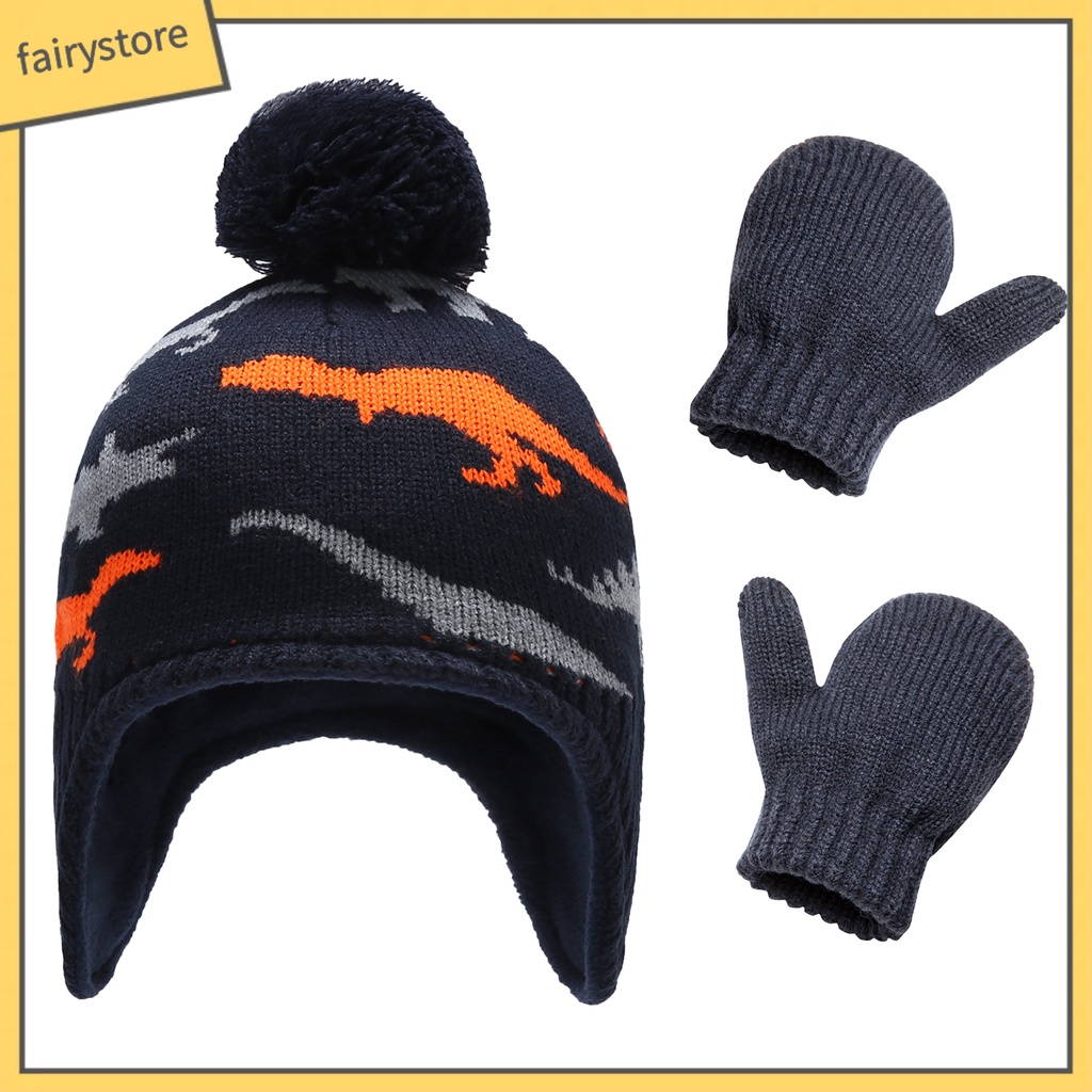 Giới thiệu Bộ Găng Tay + Mũ + Găng Tay Dệt Kim Hình Khủng Long Giữ Ấm Mùa Đông Cho Bé