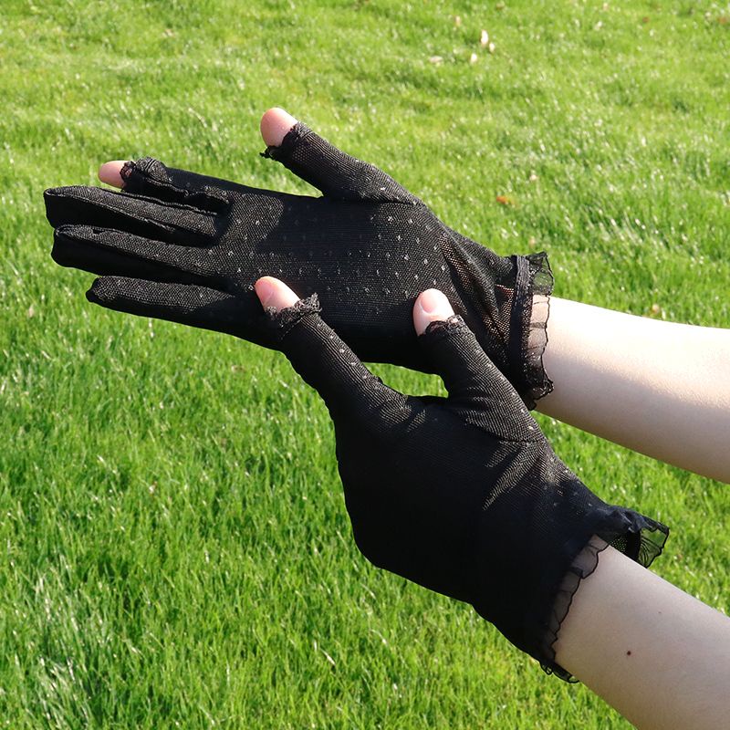 Giới thiệu Găng Tay Ren 2 Ngón Gọn Nhẹ Thoáng Khí Chống Nắng Chống Tia Cực Tím Màu Đen Thanh Lịch Cho Nữ